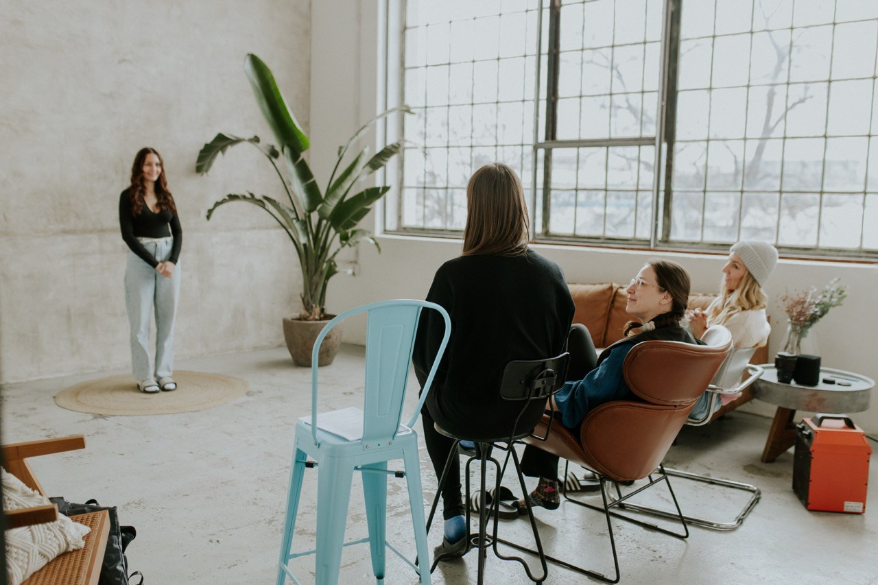 - Po kurzu “Uvolni se před foťákem” to nekončí. Navazuje cyklus tří workshopů, kde jdeme hlouběji. Každé setkání ti dá konkrétní nástroje — práce s tělem, energií, nekomfortem a s tím, jak se chceš prezentovat. Ne jak si myslíš, že se máš prezentovat. Ale jak ty chceš.